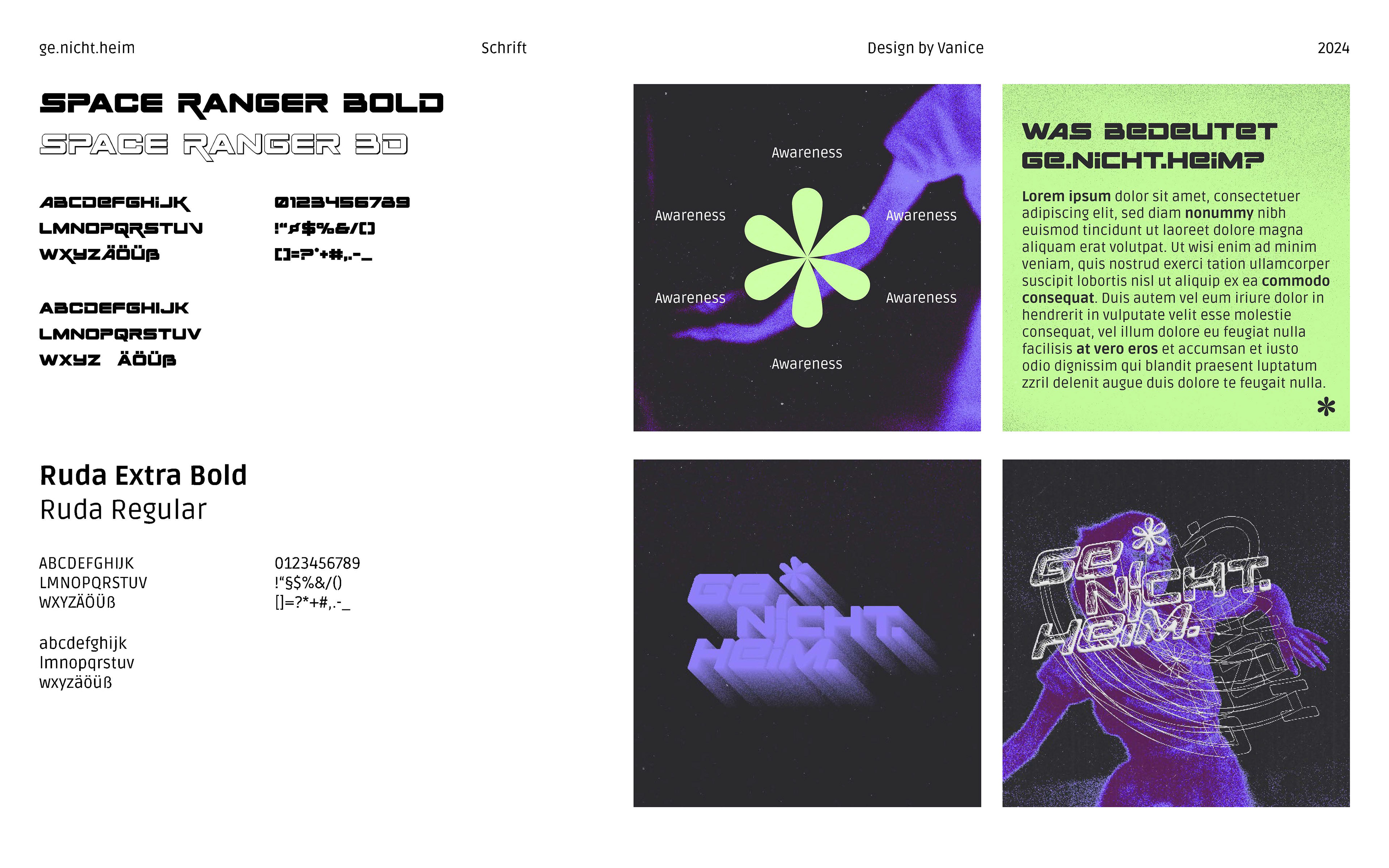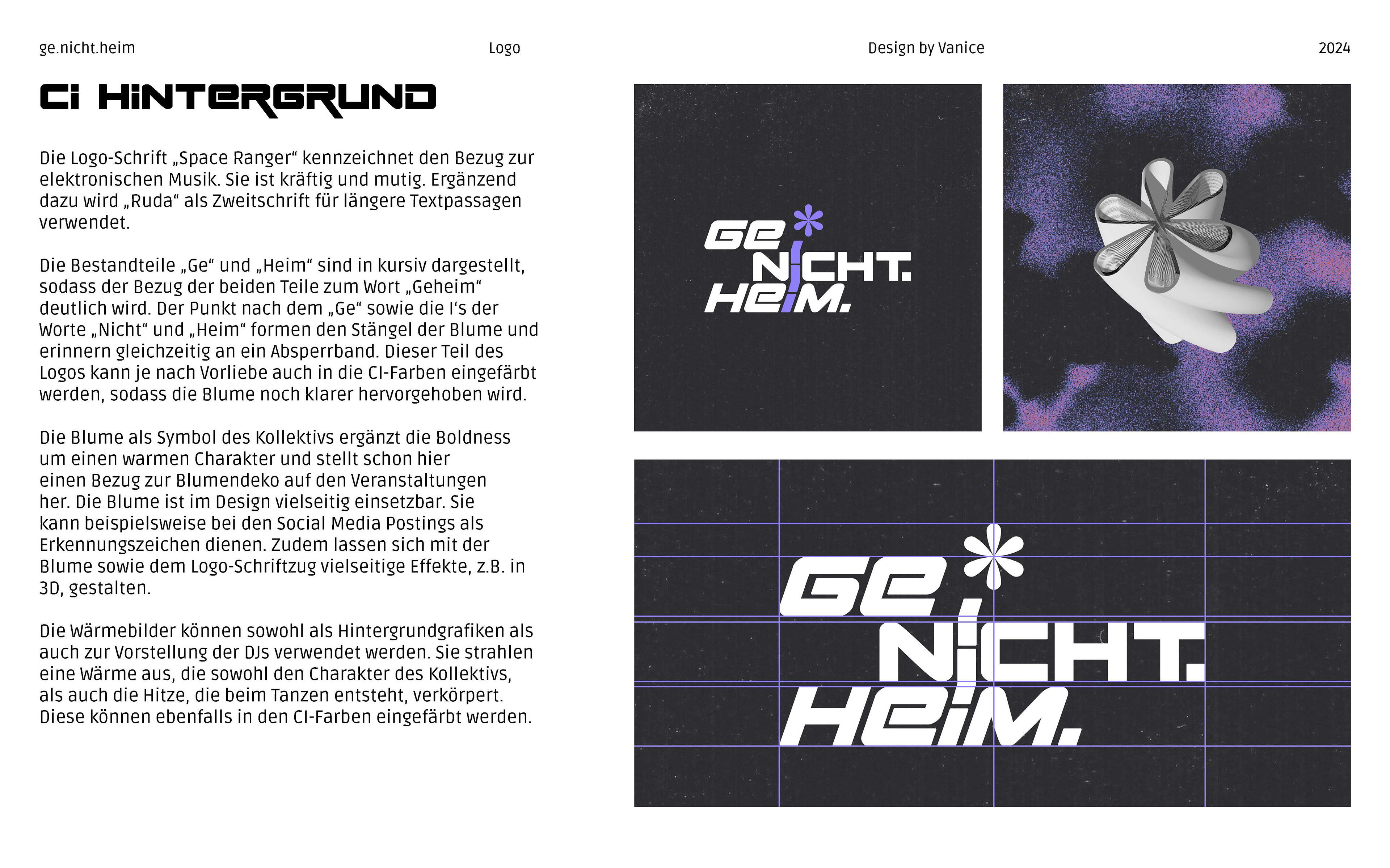 Corporate Identity für das FLINTA* Kollektiv ge.nicht.heim aus Siegen und ihre Veranstaltung Vivid Playground